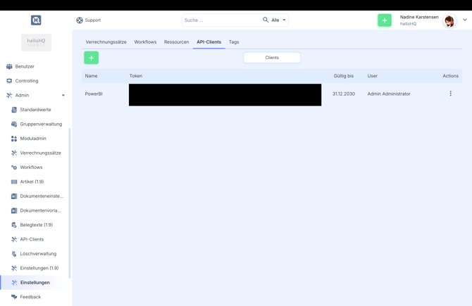 Gehe hierzu in helloHQ zu Admin → Einstellungen → Reiter »API-Clients«.