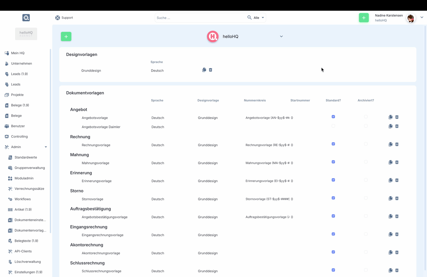 Sobald du ein Grunddesign mit Schweizer Belegsprache hast. Musst du neue Dokumentvorlagen mit dem Schweizer Grunddesign anlegen.